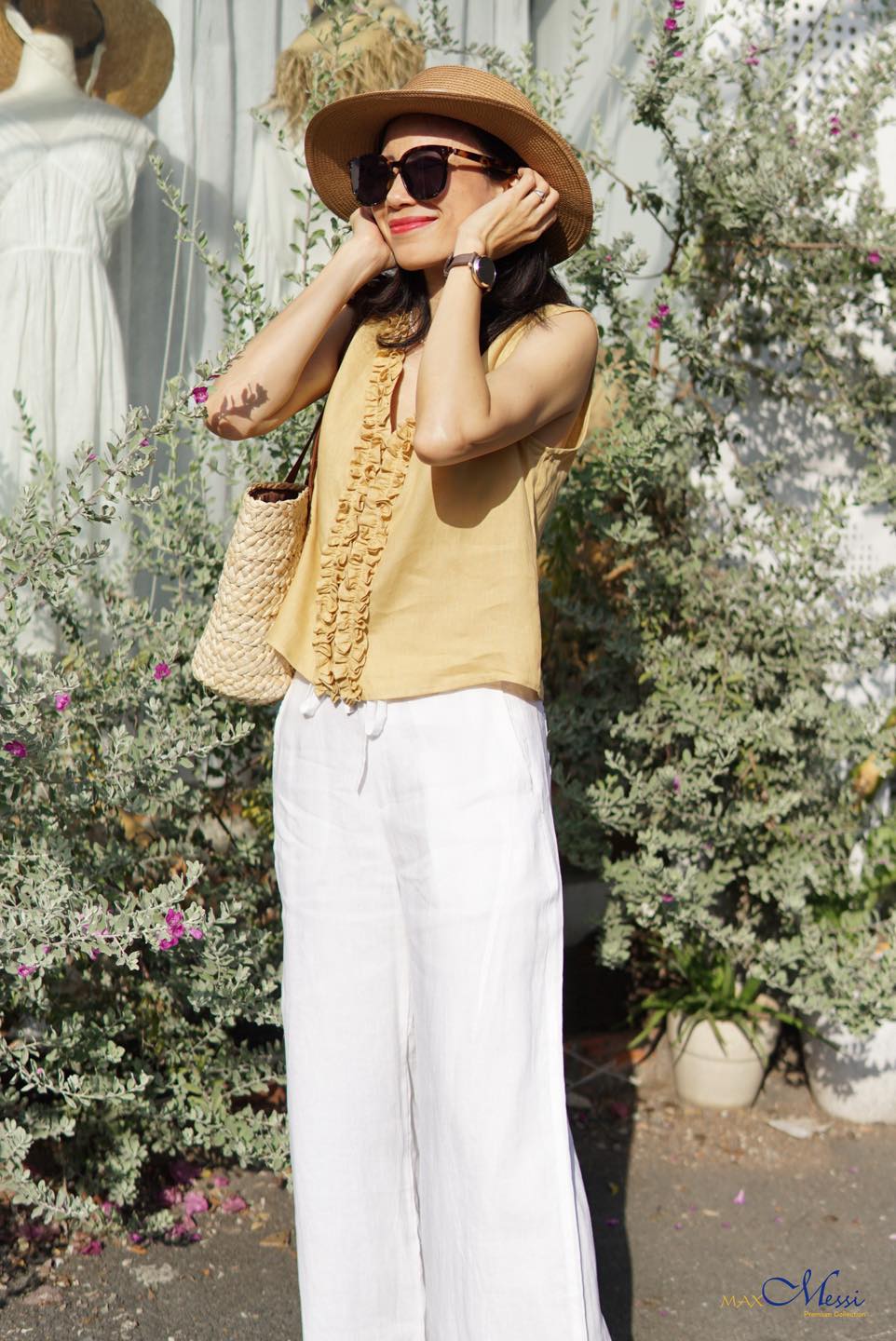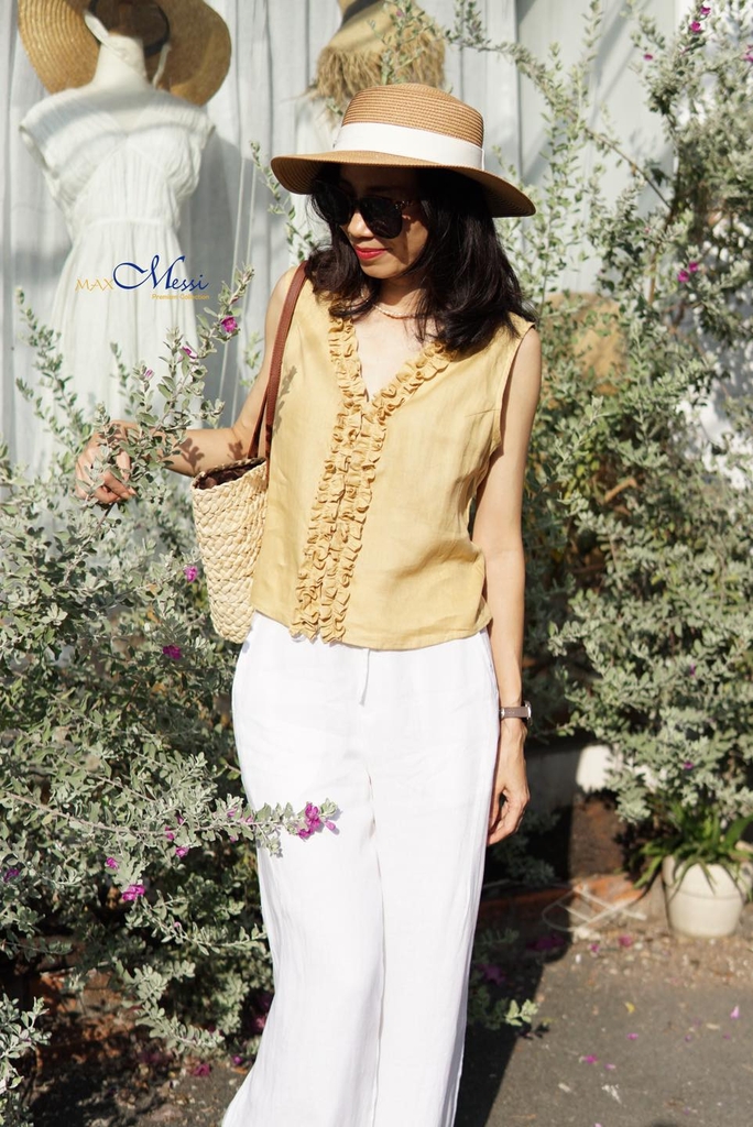 A224 Áo Linen sát nách cổ xếp SHELLY