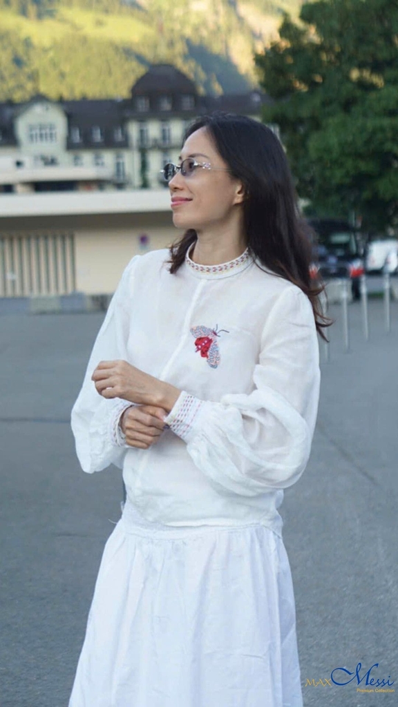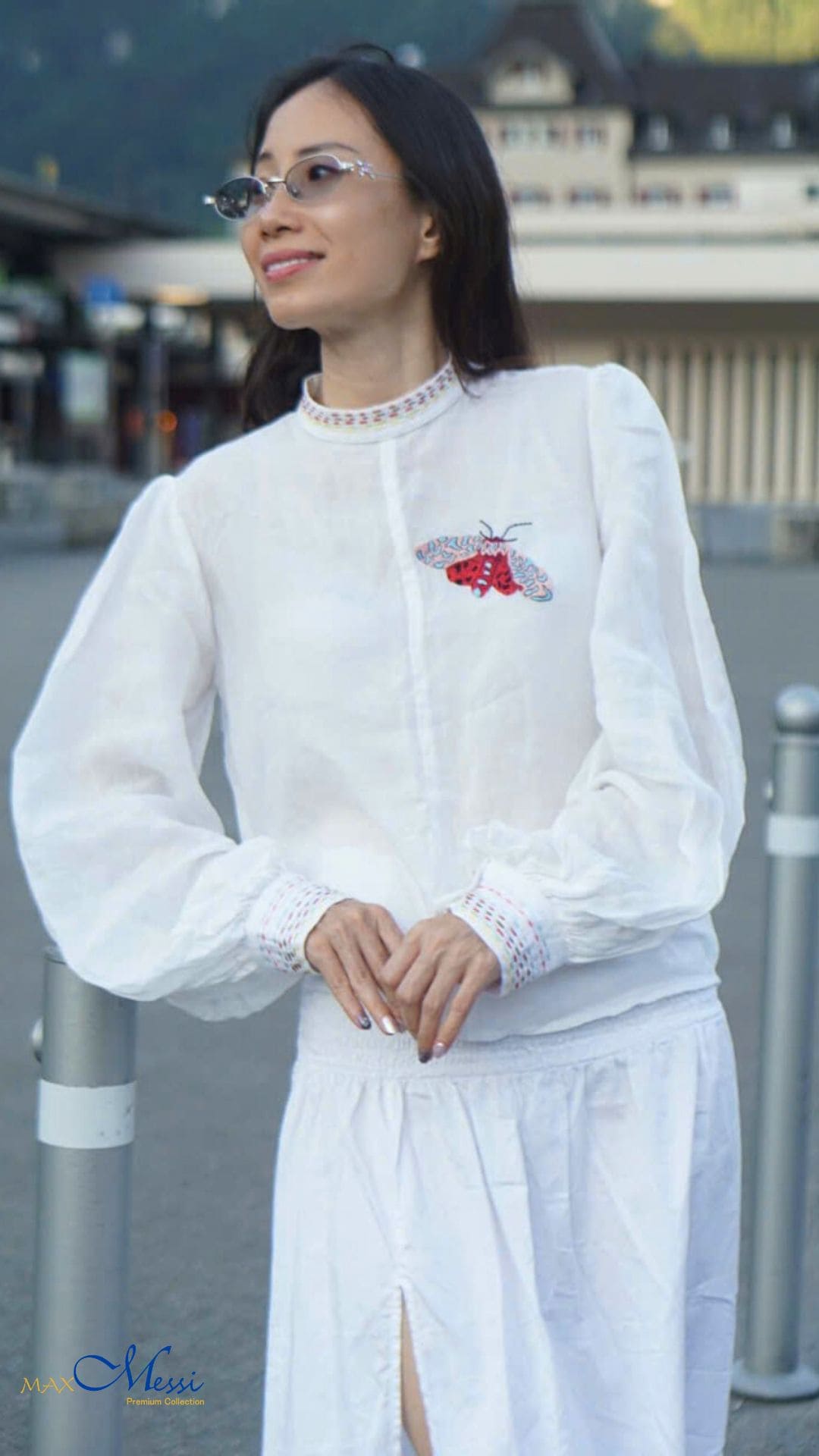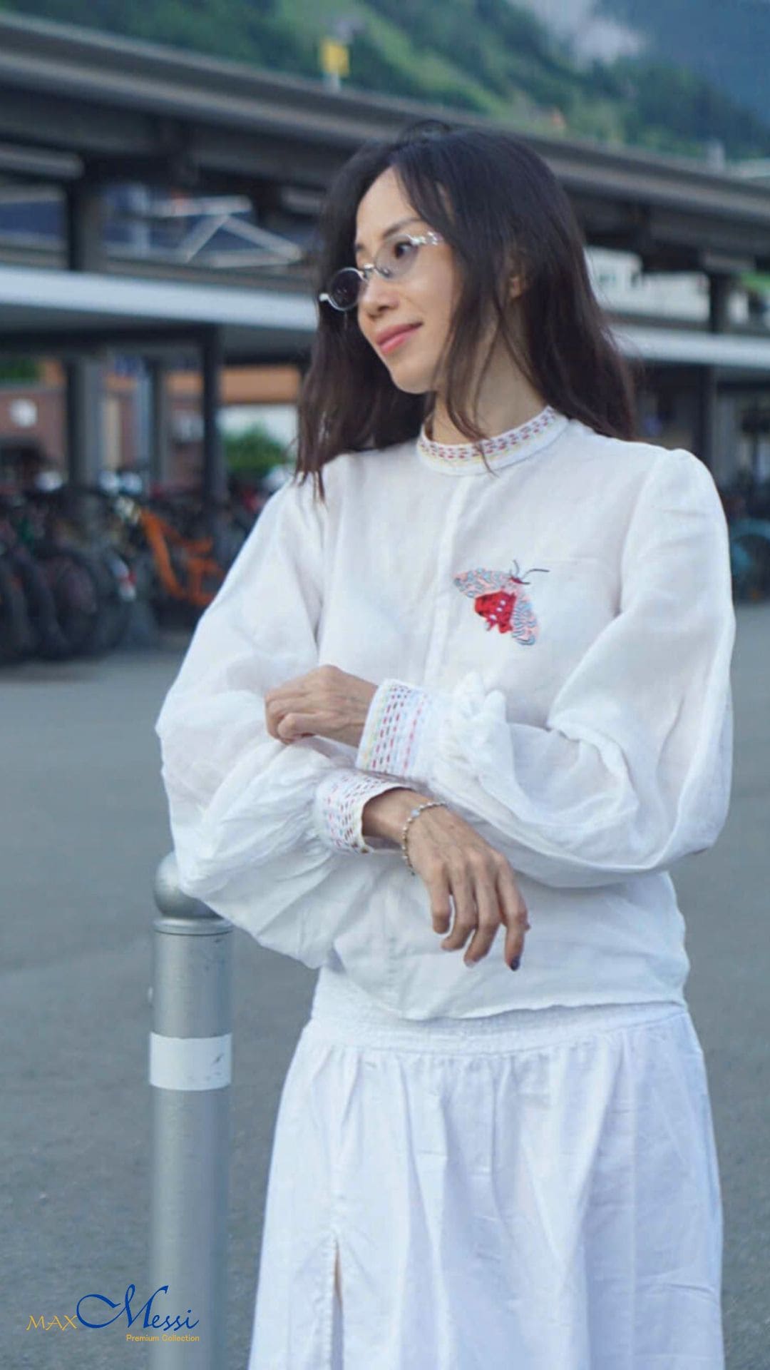 Áo linen cổ lọ thêu bướm BUTTERFLY MaxMessi