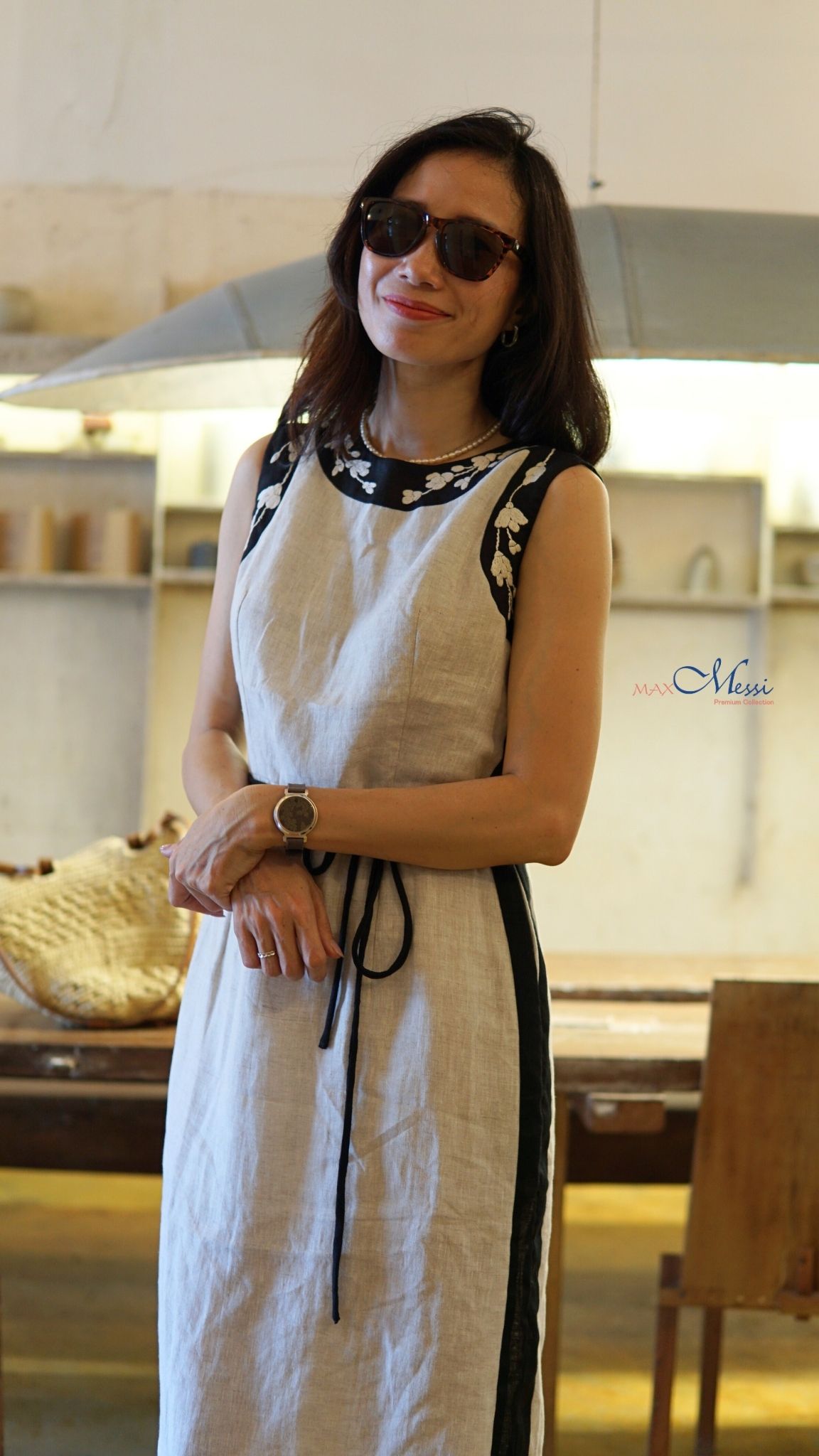 Đầm linen phối 2 màu thêu tay LILY MaxMessi