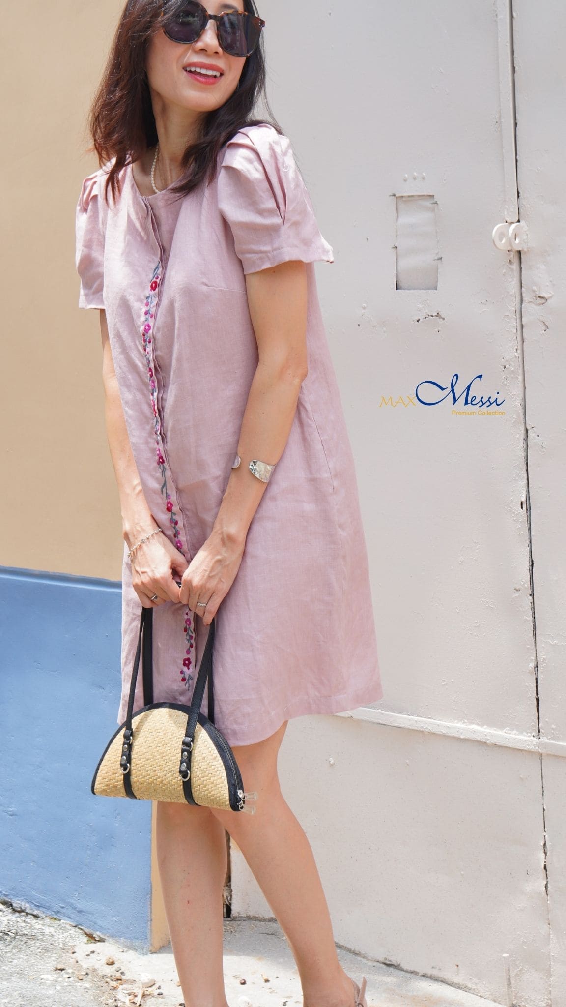 Đầm linen thêu nút BUTTON new- MaxMessi