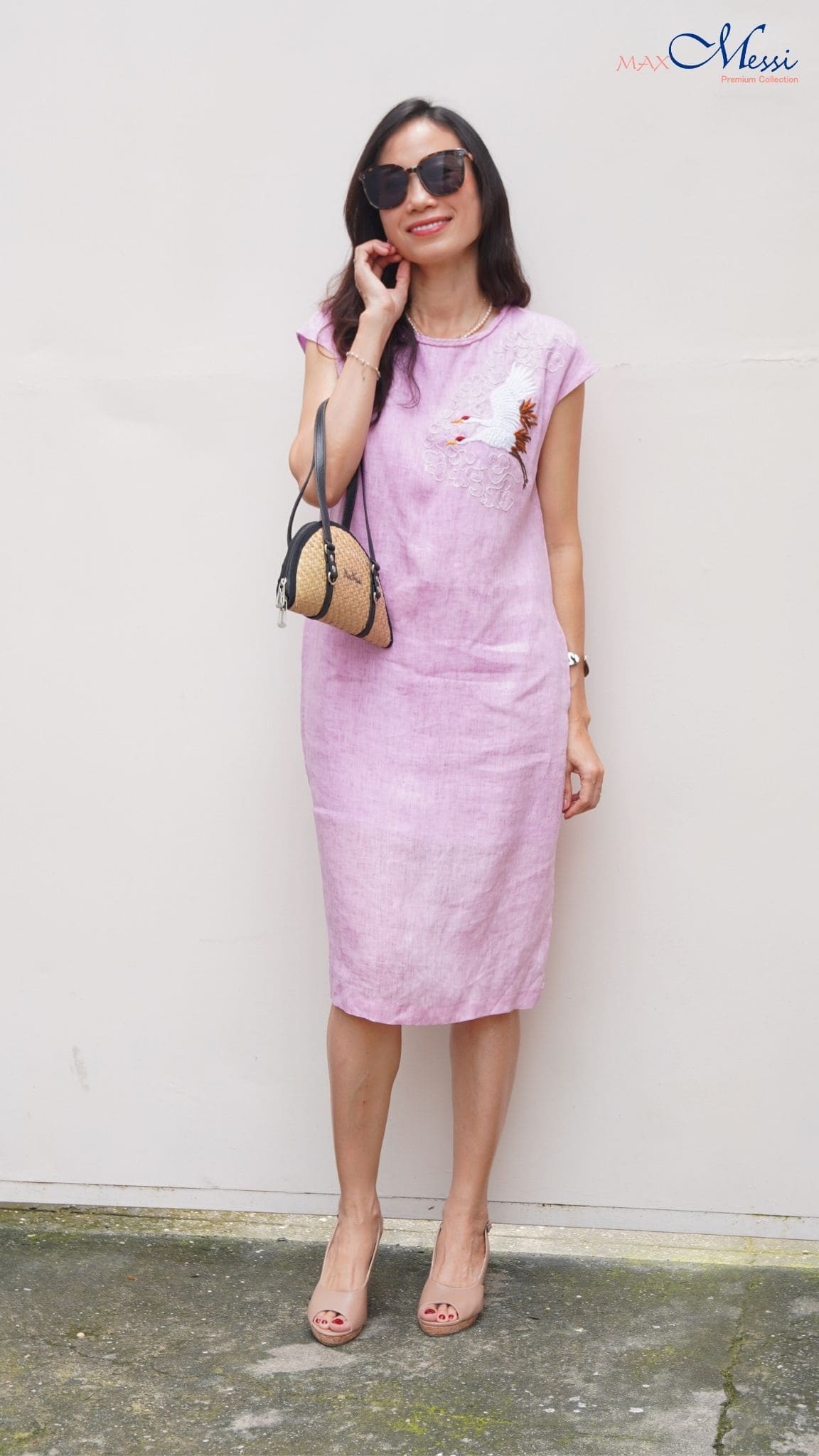 Đầm linen thêu tay HẠC TRẮNG MaxMessi Premium Collection
