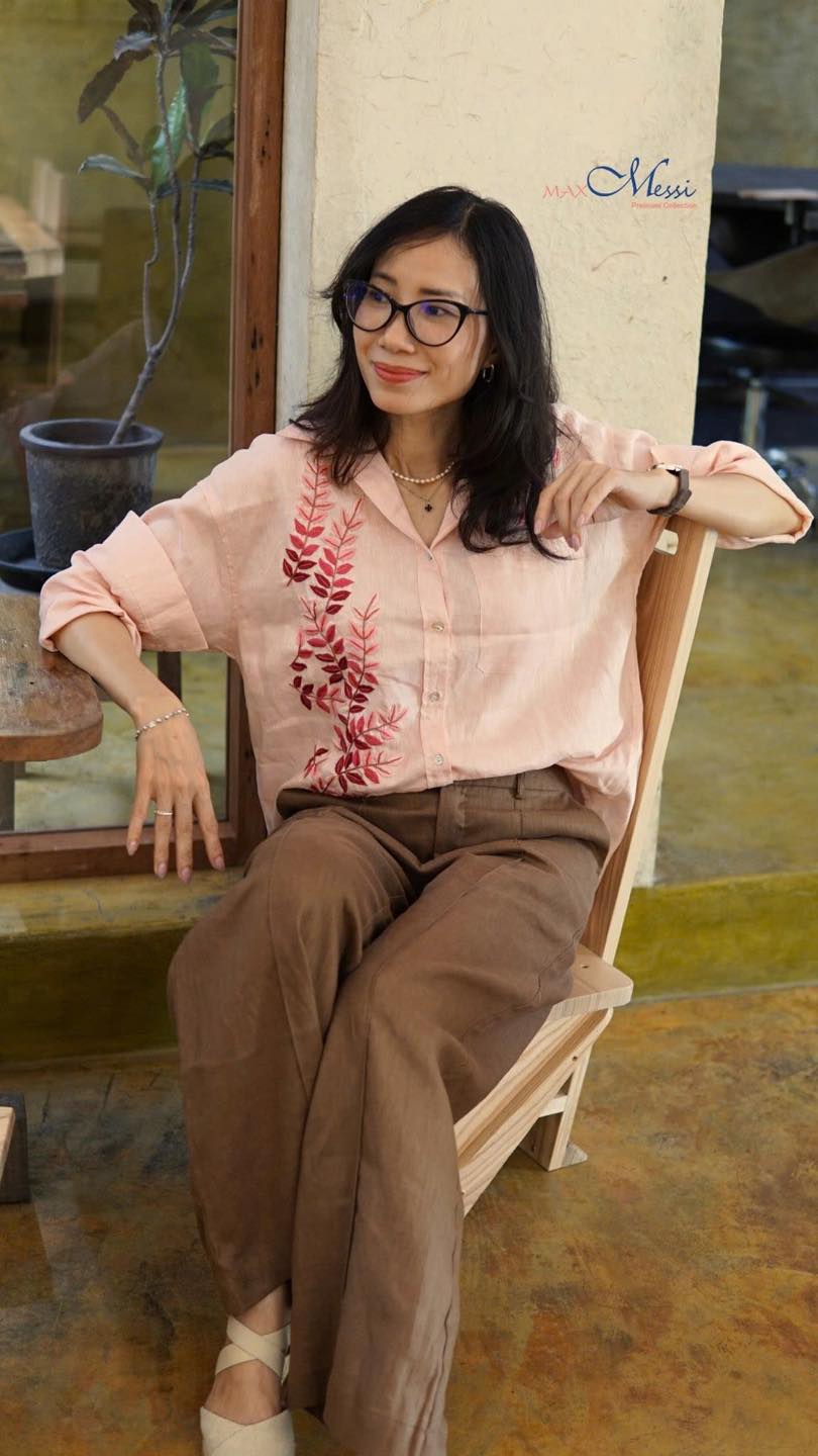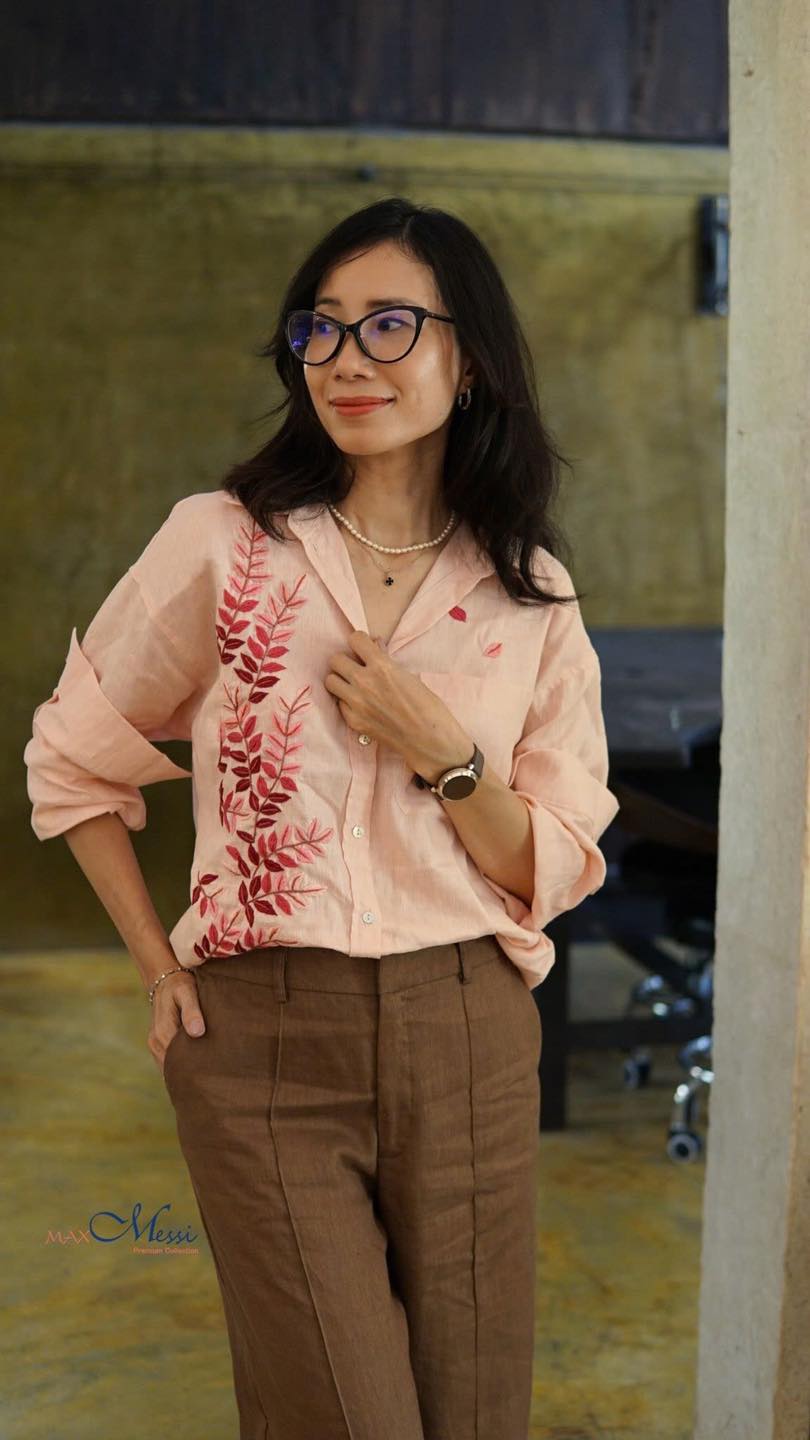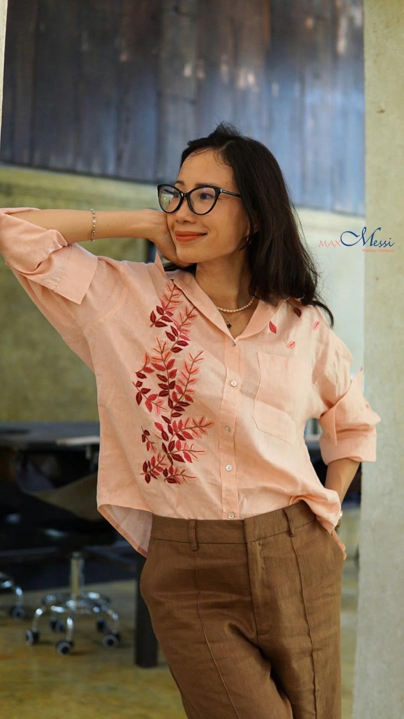 Sơ mi linen thêu lá chùm VENICE MaxMessi